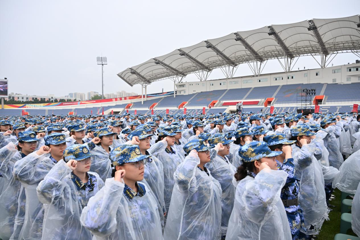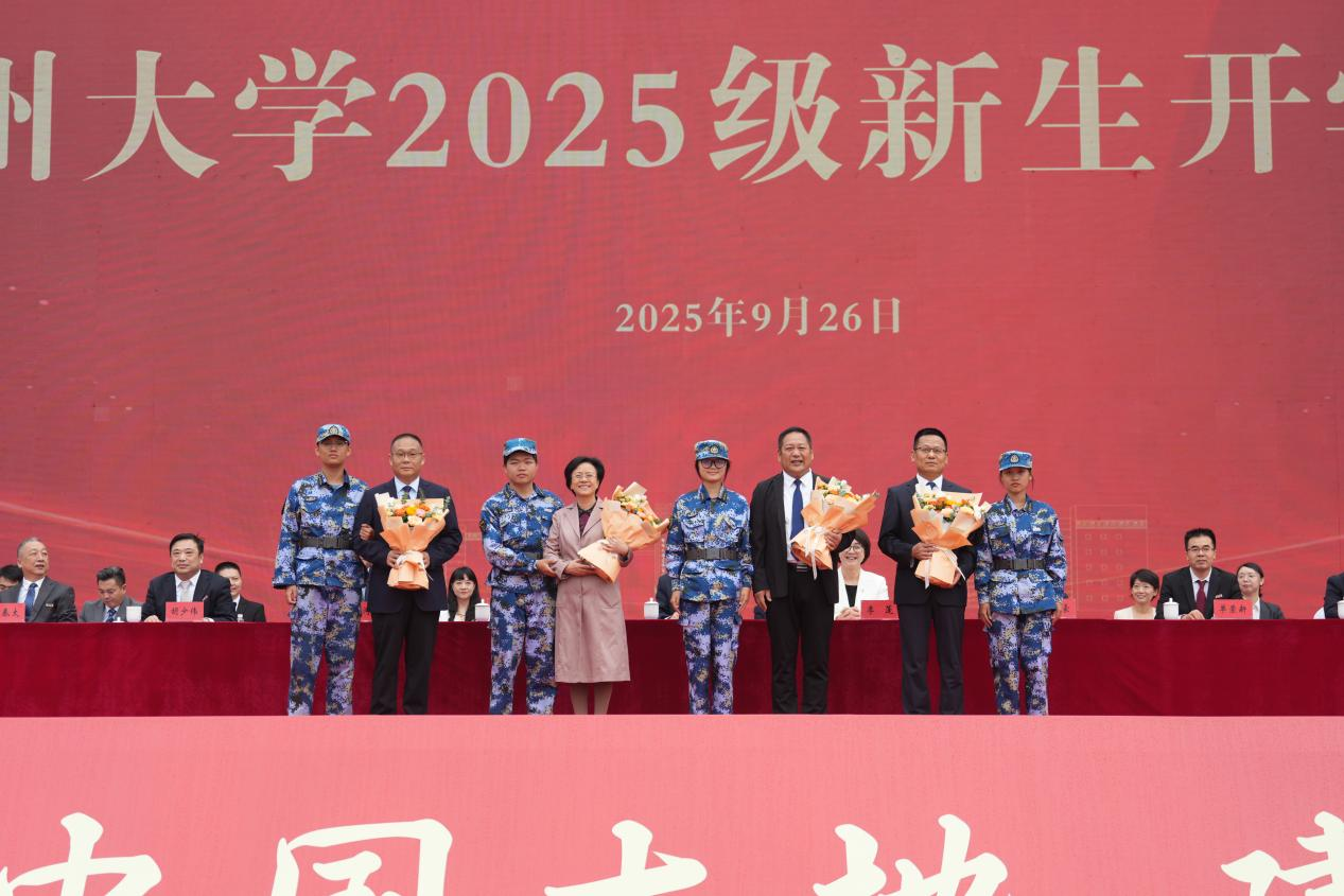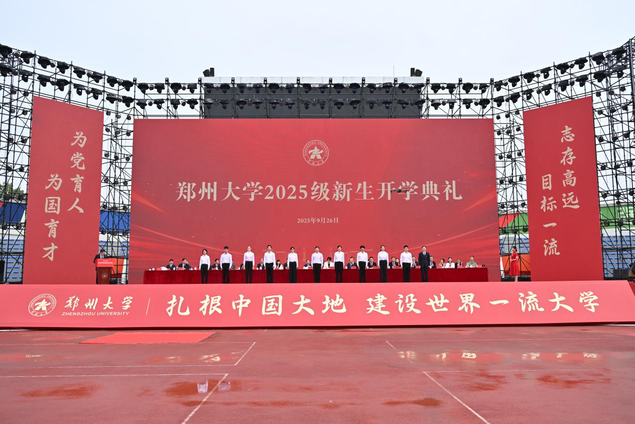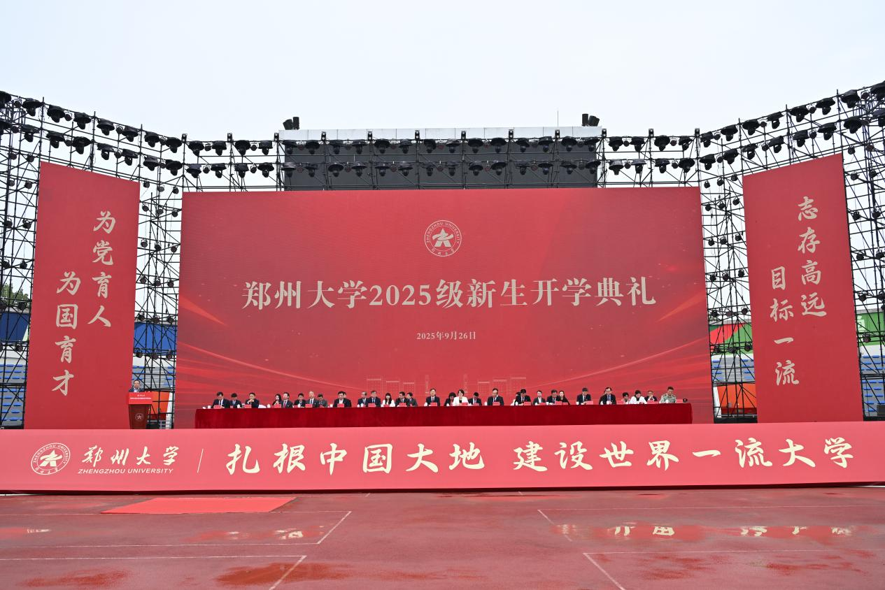 秋雨润泽,学府迎新。9月26日,郑州大学在主校区本源体育场举行2025级新生开学典礼。校领导李成伟、李蓬、韩国河、单崇新、胡少伟、徐东升、刘春太、王海杰,中国科学院院士常俊标、中国社会科学院学部委员宋镇豪,学术副校长董子钢、臧双全、杨天若、刘吕红等出席典礼。国家级领军人才与教学名师代表,优秀校友代表,郑州大学优质生源基地代表,中国人民解放军32150部队承训官兵,校部机关和各学院主要负责同志,教师与家长代表以及2025级全体新生共同参加典礼。校党委副书记王利国主持典礼。