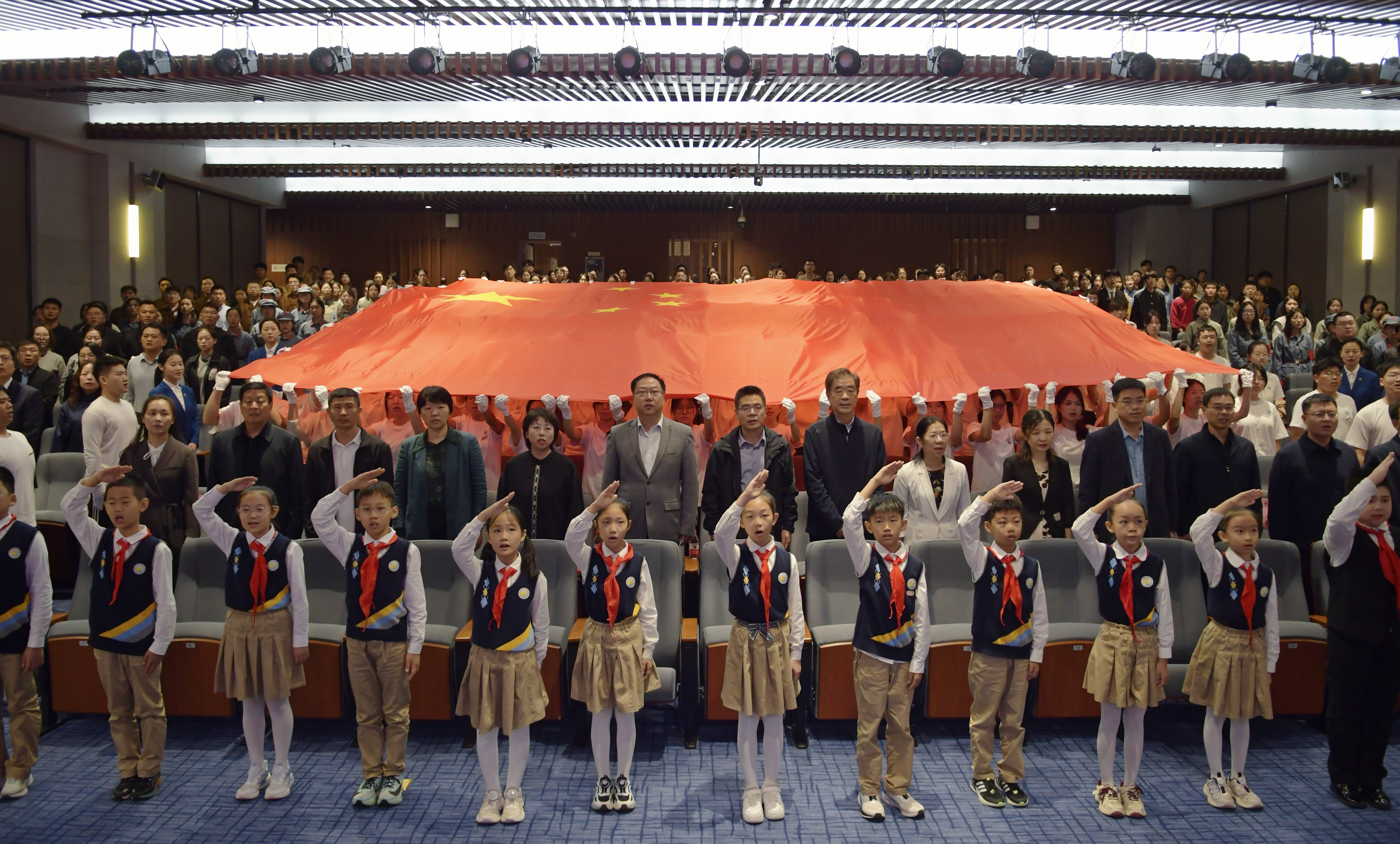 典礼前,师生代表参观了“山河永固”主题展览。一件件珍贵文物为同学们带来一场深刻的精神洗礼,在庄严的国歌声中,全场肃立,注视着由105名同学托举的五星红旗。国旗如火,国歌如潮,激发了同学们为强国建设、民族复兴而读书的使命感。