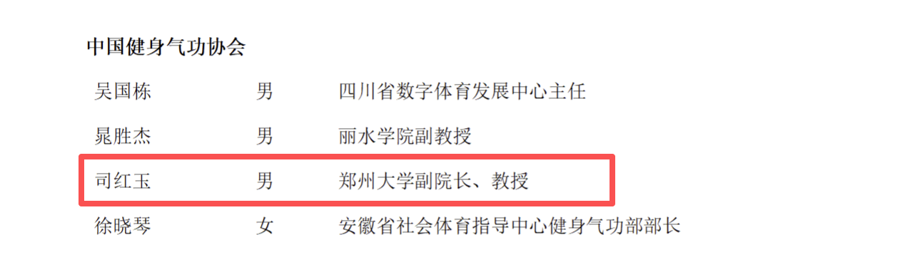 近日,国家体育总局公布《关于表彰2021—2024年度全国群众体育先进单位和先进个人的决定》,郑州大学运动与体育学院司红玉教授荣获“全国群众体育先进个人”称号。
