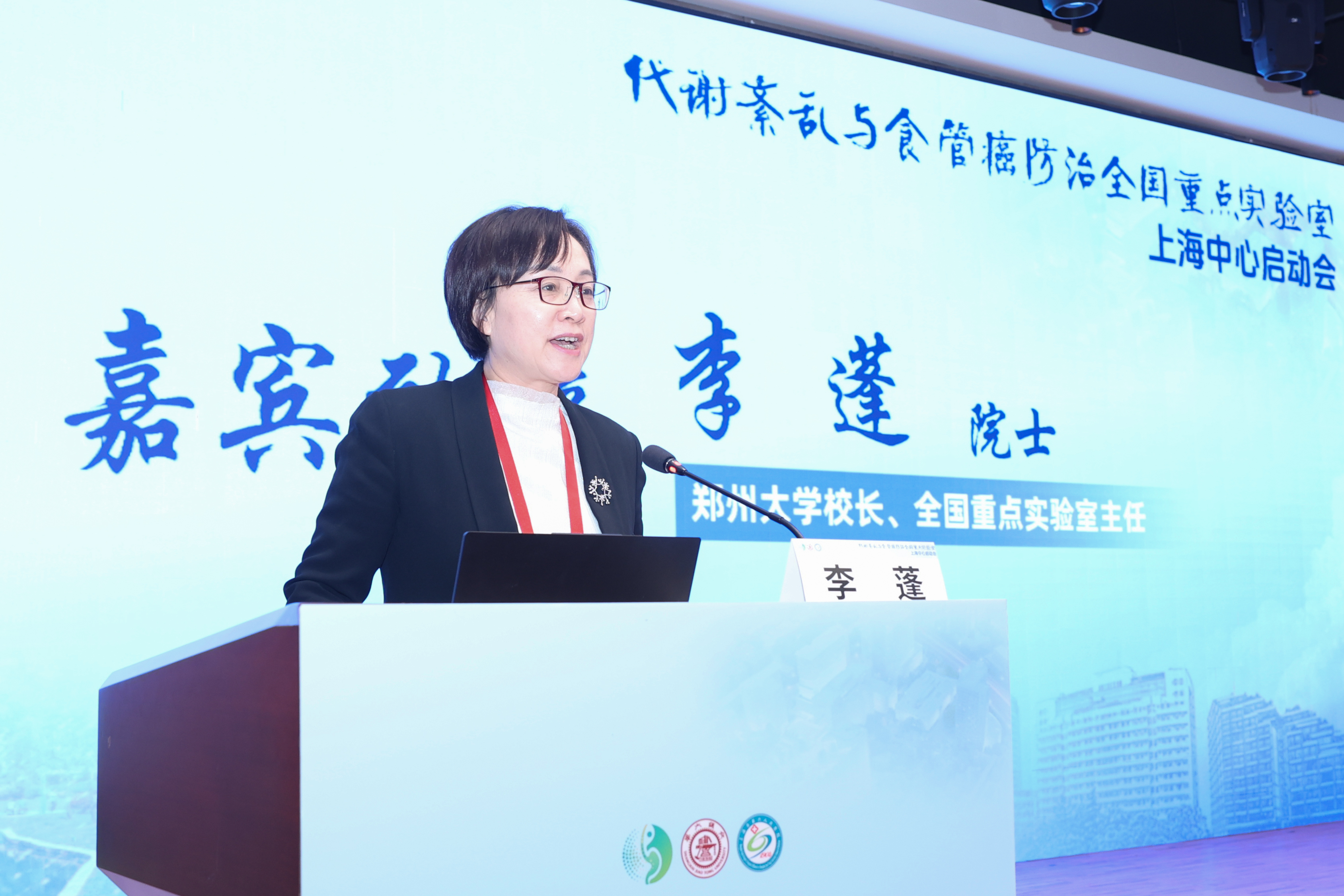 李蓬在讲话中指出,代谢紊乱与食管癌防治全国重点实验室获批,源于国家推进重大慢病防治的重大战略布局,源于郑州大学、上海交通大学和北京大学在医学领域特别是在代谢紊乱与食管癌防治研究方面的优势叠加,源于三方致力于攻克食管癌等重大癌症的共同追求,使命光荣,责任重大。她表示,上海中心是优化实验室布局、增强实验室整体功能的核心举措,是实验室创新体系深度融入长三角地区的战略支点,必将有力推动跨地区、跨学科、跨机构的资源整合与协同创新,为打造具有国际影响力的食管癌防治研究中心注入强劲动能。围绕上海中心未来发展,她提出三点期望,一是坚持问题导向,建构科研攻关新体系。紧密围绕学术前沿与临床急需,聚焦食管癌防治关键机制与科学难题,明确主攻方向,开展体系化攻关,形成中心科研特色和学术优势。二是广聚高端人才,构建开放协同新生态。面向全球吸引顶尖科学家与创新团队,深度融合本地高校、医院的智力资源,推动临床与科研人员双向赋能,打造一支医研结合、结构合理、可持续发展的复合型科研队伍。三是深化校际合作,探索多元合作新模式。以分中心为纽带,推动郑州大学与上海交通大学在科研攻关、平台共享、临床转化等方面开展常态化合作,构建跨区域、高水平的医学创新共同体。她希望实验室和上海中心的同仁一起,凝心聚力、攻坚克难,为提升我国食管癌防治水平、推动肿瘤防治科技进步、助力“健康中国”建设作出新的更大贡献。
