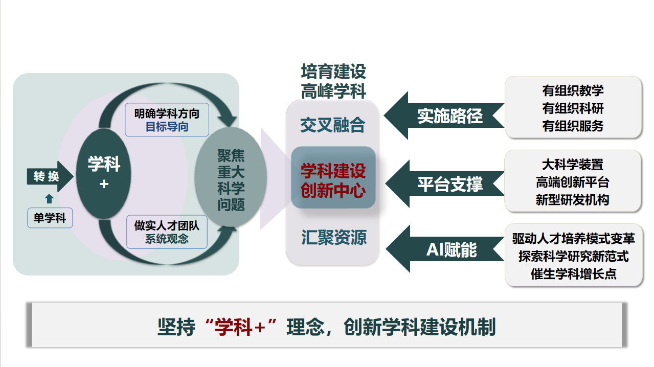 围绕国家战略、区域需求和学校实际,塑造“精优文科、前沿理科、智强工科、尖峰医科”的发展格局,打破传统学科壁垒,构建以优势特色为牵引、以交叉融合为动力的学科生态系统。