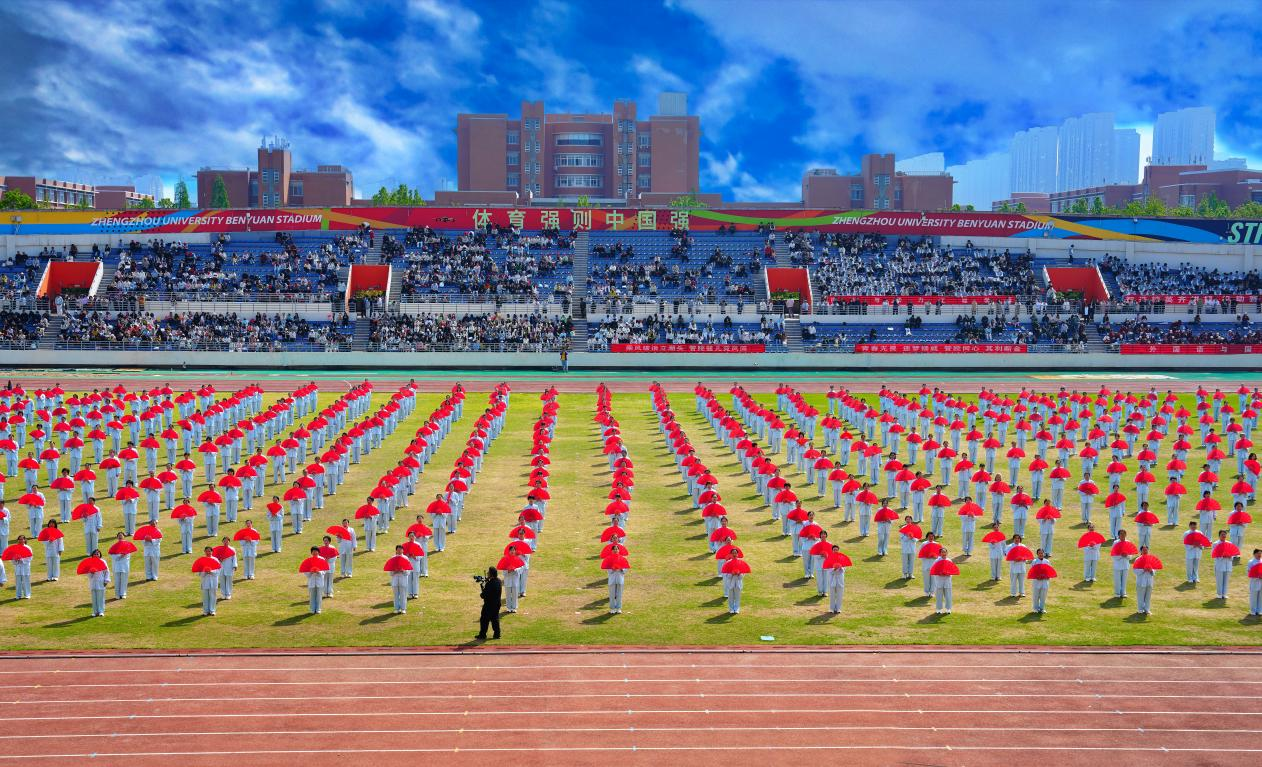 4月9日,郑州大学2026年阳光体育运动会开幕式盛况空前,来自全校50余个基层工会的750名女教职工组成展演方阵,身着统一服饰,手持红扇,伴着悠扬古典的乐曲舒展身姿。一招一式刚柔并济、开合有度,将传统太极文化的深邃底蕴与现代女性的飒爽英姿完美融合,赢得了现场师生的阵阵掌声与高度赞誉,展现了郑大女教工的卓越风采。