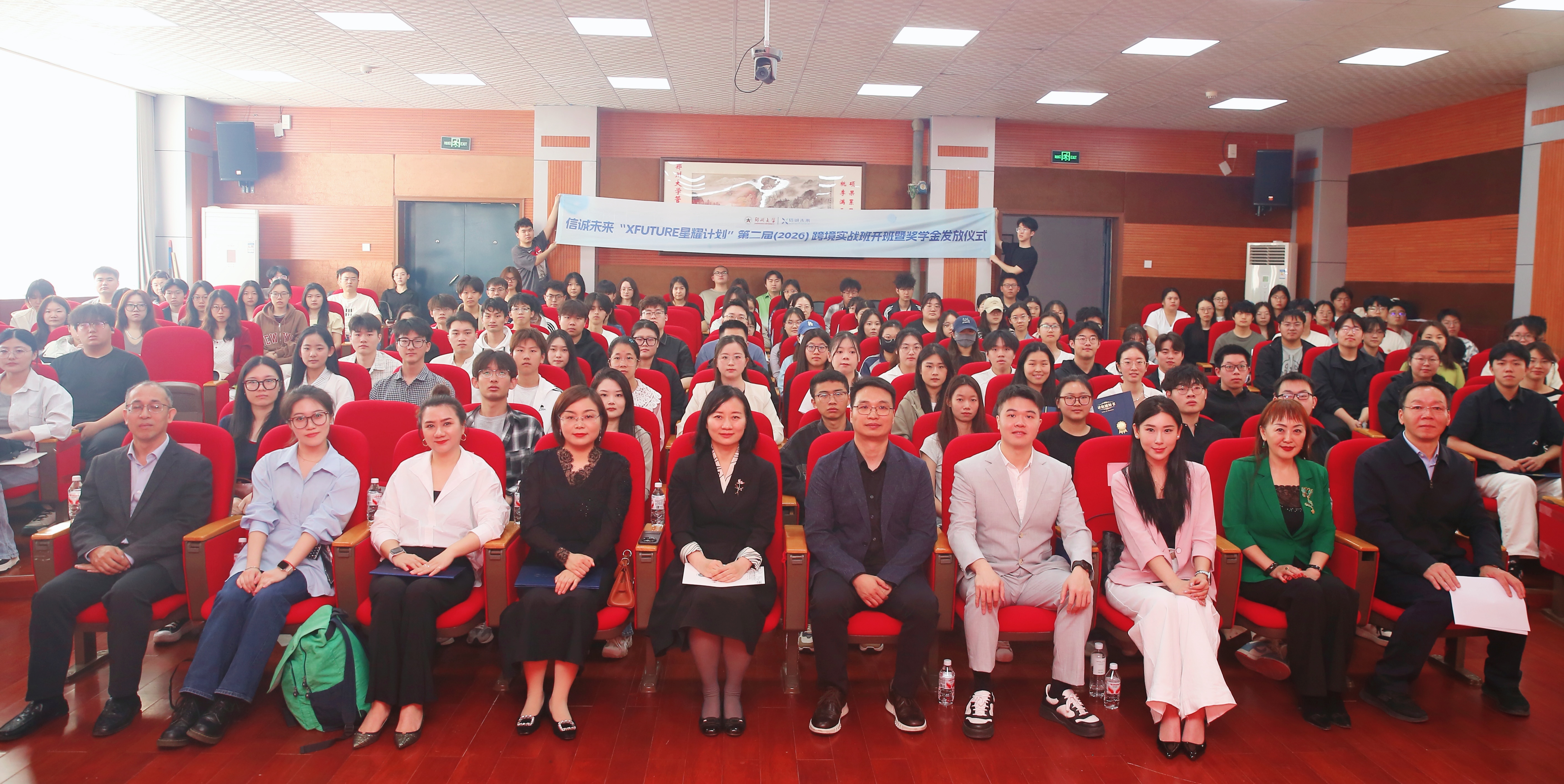 4月18日,信诚未来“XFUTURE星耀计划”第二届(2026)跨境电商实战班开班暨奖学金发放仪式在主校区举行。郑州大学党委常委、纪委书记、监察专员陈曦,深圳市信诚未来科技有限公司创始人、总经理、管理学院2002级工业工程专业校友王会中出席活动。深圳市信诚未来科技有限公司高管团队,学校相关职能部门、院系负责人以及管理学院师生代表等共160余人参加活动。