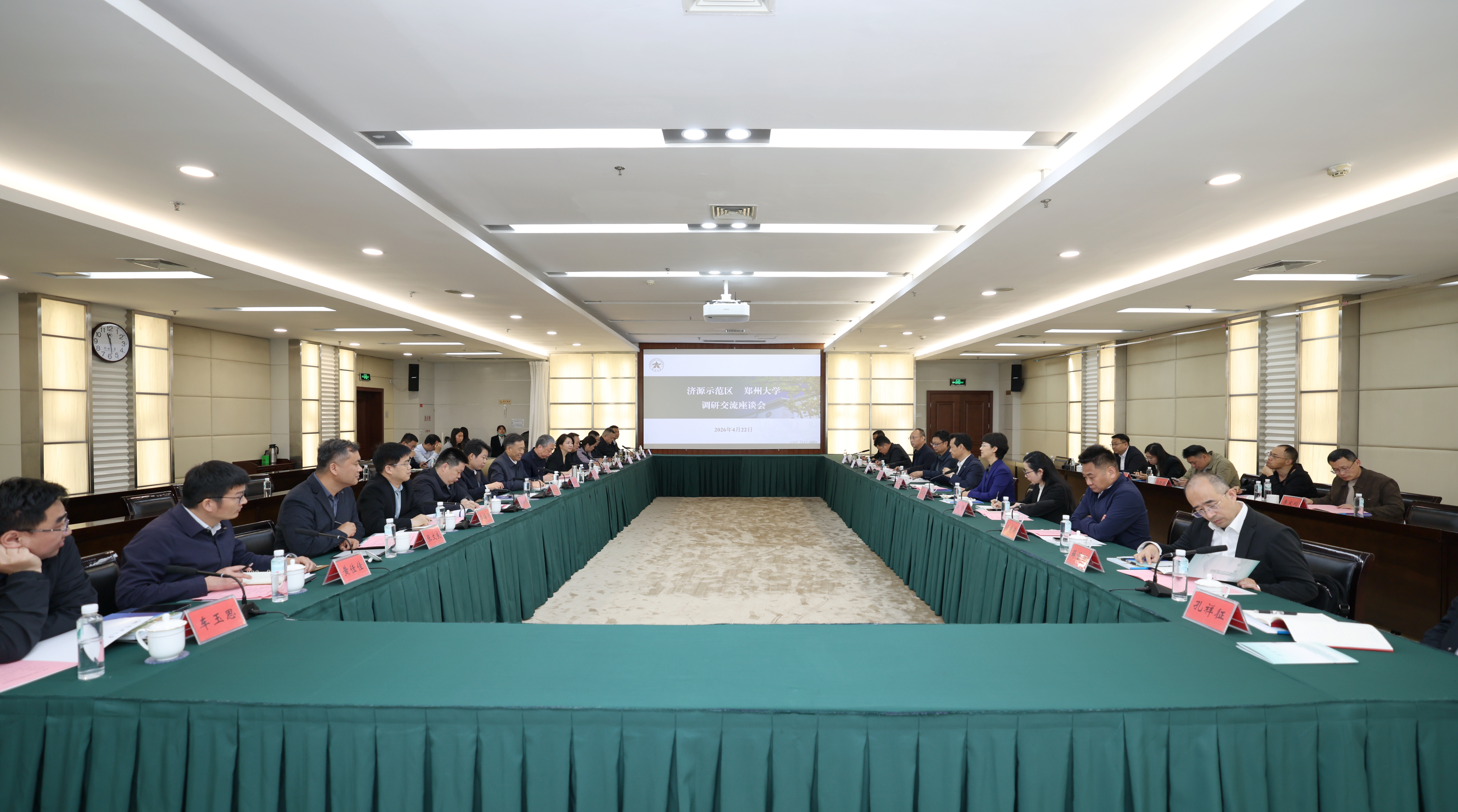4月22日,济源示范区党工委委员、管委会副主任、副市长王笑非带队来校调研交流。校党委书记李成伟,副校长刘春太,校党委常委、副校长臧双全出席活动。济源示范区相关局委及企业,郑州大学相关职能部门、学院负责同志参加会议。