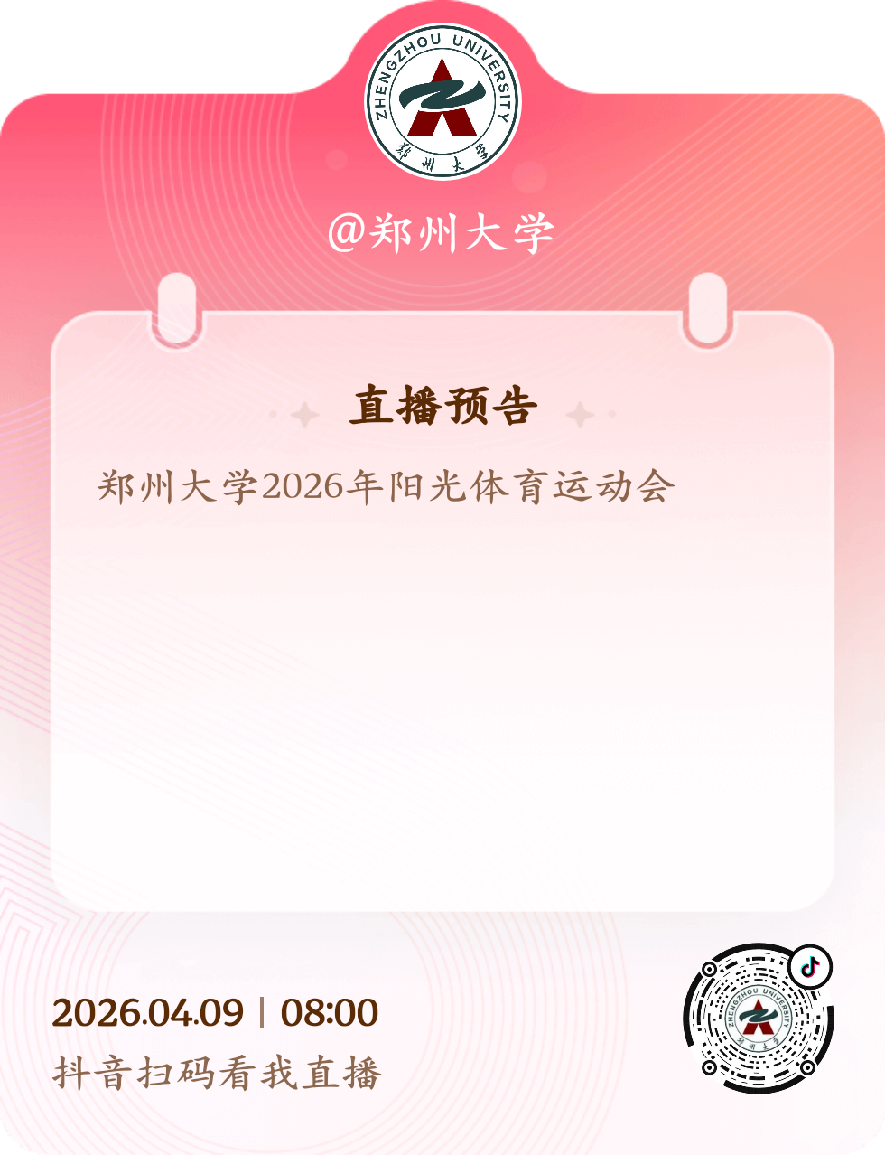 郑州大学2026年阳光体育运动会开幕式将进行线上同步直播,全景展现运动会盛况。欢迎广大师生、校友及家长届时收看。